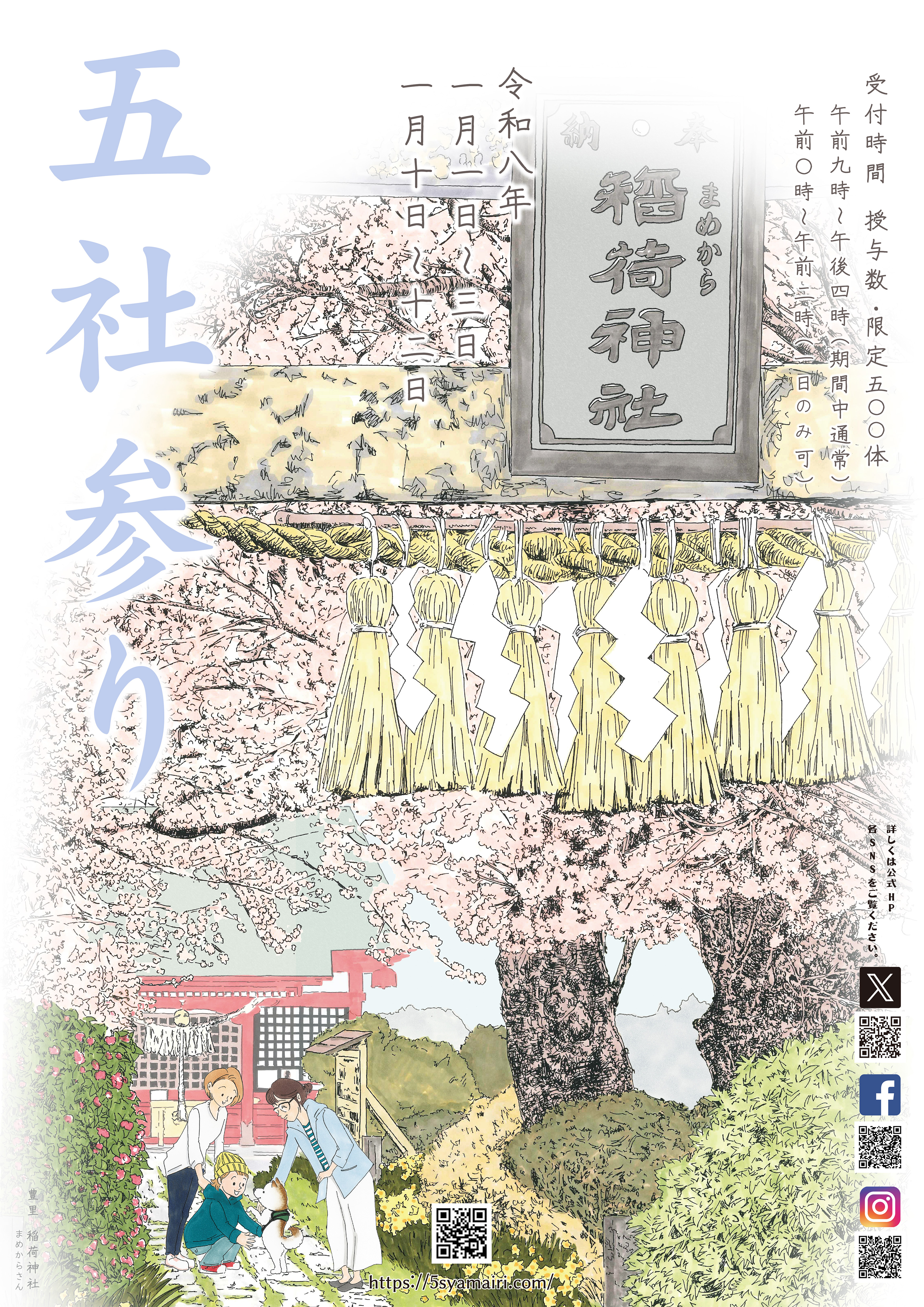 五社いずれかの神社にて御朱印用紙をお受け頂きましたら、お好きなコースで各神社に参拝し、御朱印用紙に参拝証明印をお受け下さい。 五社参りを終了しましたら、御朱印用紙は参拝の証となりますので、大切にお持ち下さい。
